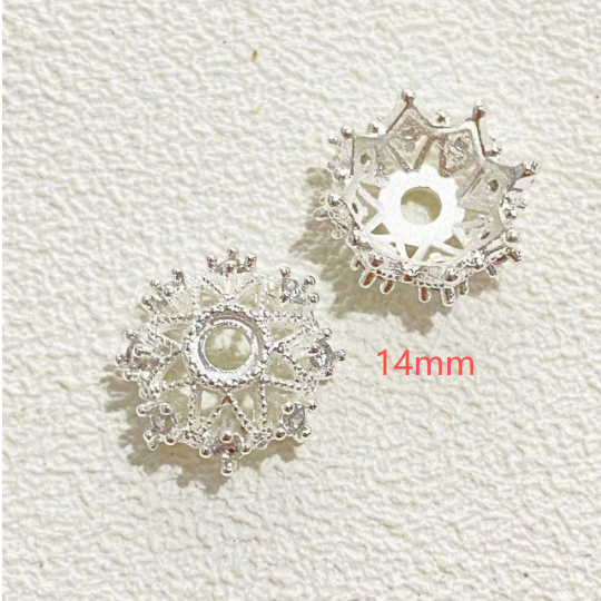 Color-preserving 14K gold micro-inlaid zircon flower setting, flower cap, and spacer